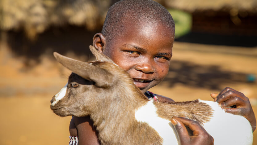 南スーダンからウガンダに逃れてきた少女とお友だちのヤギ