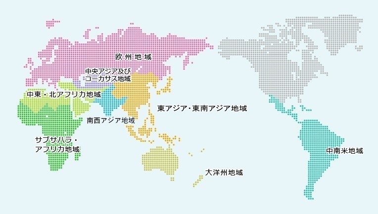 日本の政府開発援助(ODA)では、援助を行う対象の国々を8つの地域に区分しています(注1)。