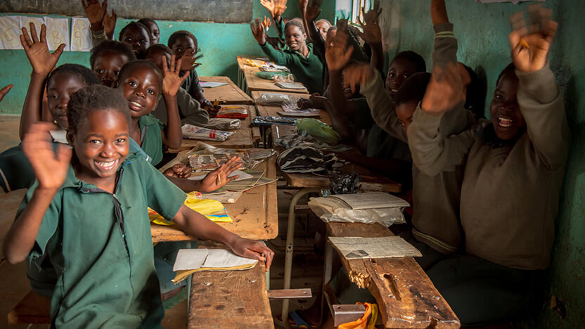 学校で勉強するザンビアの子どもたち