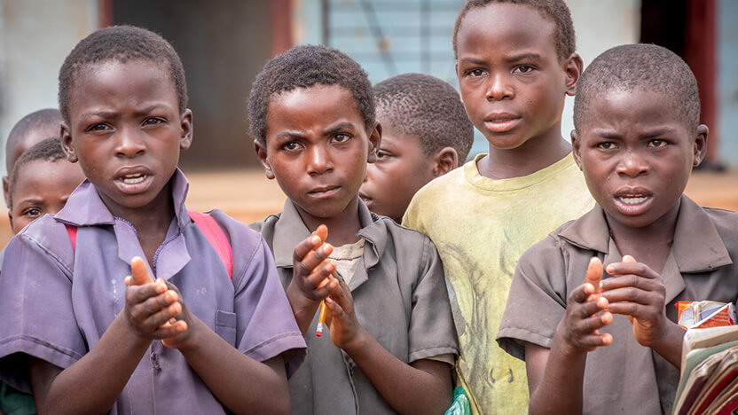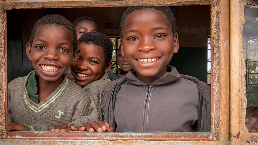 笑顔でこちらを見つめるザンビアの子どもたち