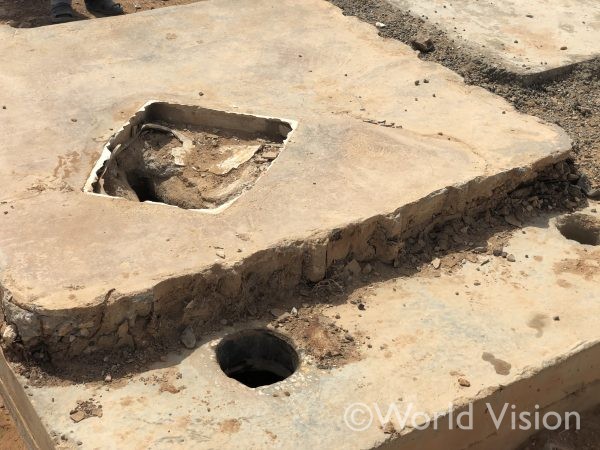 ワールド・ビジョンは、アズラック難民キャンプでの新型コロナ感染症によるリスクを低減するため、水衛生環境改善の支援を行ってきた。近辺のシリア難民キャンプの中でも、同キャンプの劣悪なトイレ環境は際立っている――なんと、多くの住民がおよそ20人で1つのトイレを共用せざるを得ない。しかも、多くの共用トイレは衛生上使用が困難である。そんな環境が、コロナ禍を生きる脆弱な難民の人々にとってどんな危険を孕んでいるか、普段は日本に暮らす自分にも想像は難しくない。