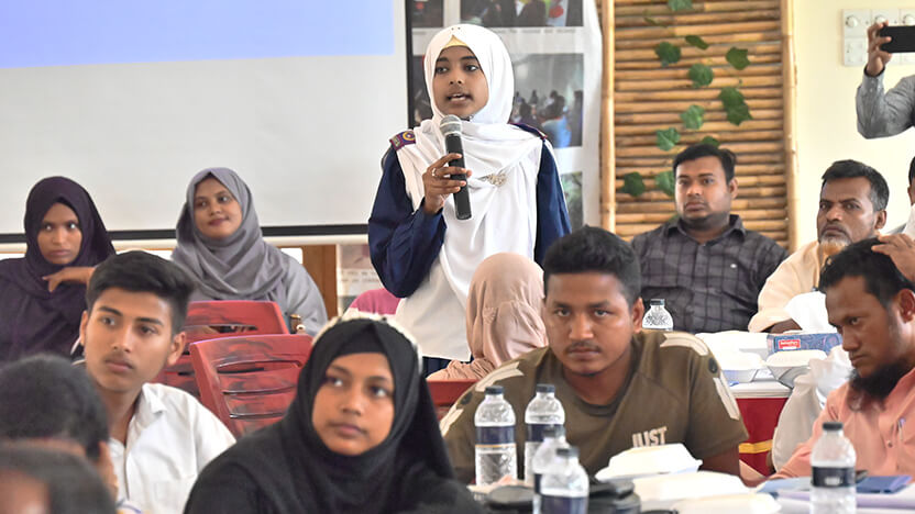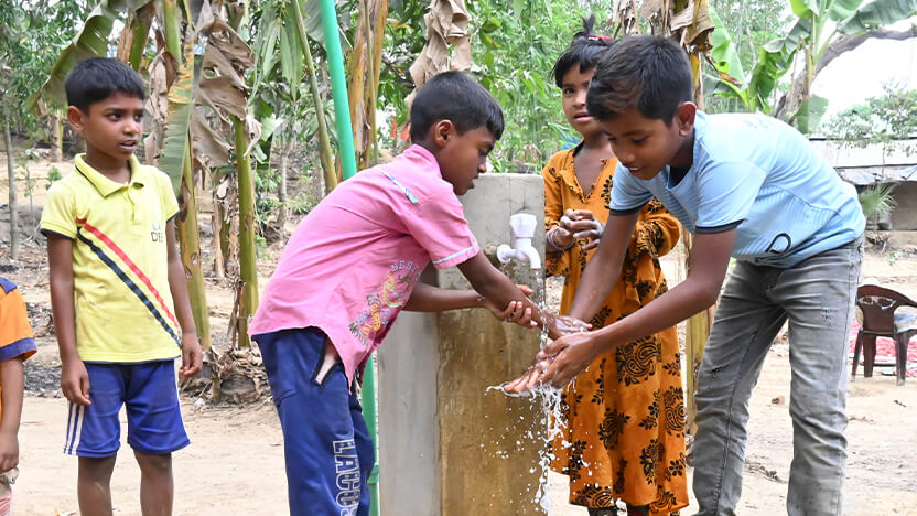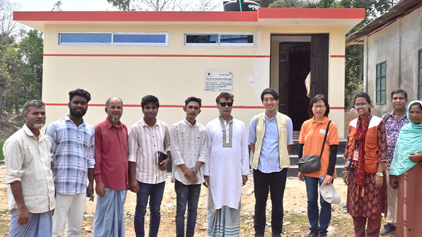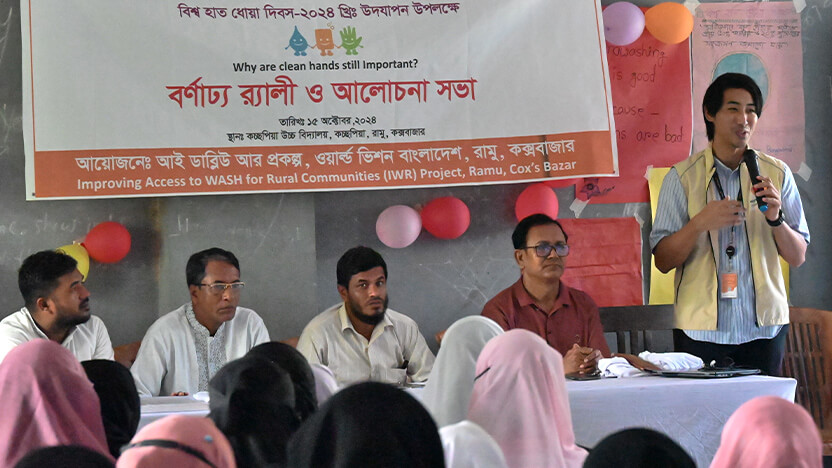 私が担当する事業では、バングラデシュのコックスバザール県ラム郡という場所で、村落レベルでの水衛生環境の改善を目指しています。コミュニティと学校で井戸やトイレ、排水溝などを建設し、住民たちがそれを維持・管理できる体制を構築し、宗教リーダーや教師、女性、子どもたちと、異なる住民グループへの啓発活動と働きかけを通じて、コミュニティ全体で適切な水衛生に関する知識と行動が普及するよう取り組んでいます。