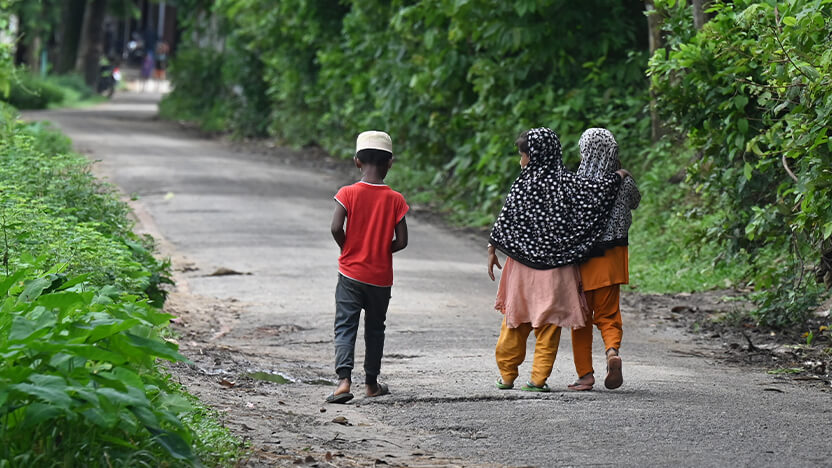 支援地域の子どもたち。仲睦まじい様子を見て、思わず後ろ姿をパシャリ。