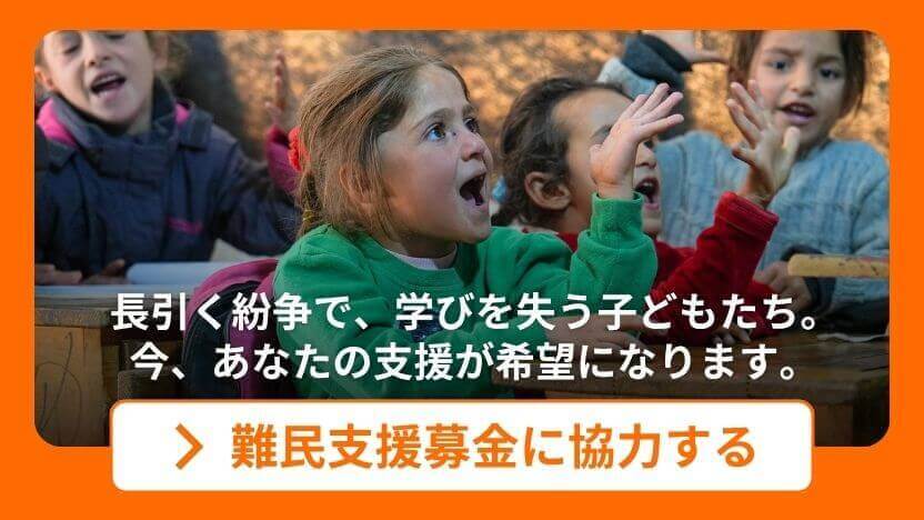 難民や国内避難民の方々が紛争後の状況を生き延び、故郷へと帰還することができるよう、これからもシリアの人々への支援を続けていきたいと思います。活動継続のため、ぜひ「難民支援募金」にご協力ください。