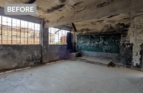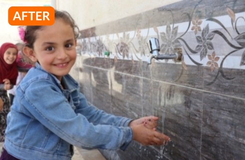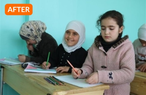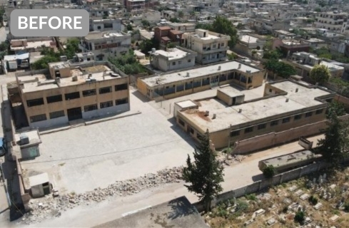シリア北西部に暮らすオマール君(仮名、10歳)の学校は、紛争と大地震によって破壊されてしまいましたが、マイルストーン・プロジェクトによって修復されました。