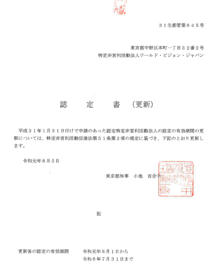 公益性の高い団体である「認定NPO法人」として東京都から認可を受けています。
