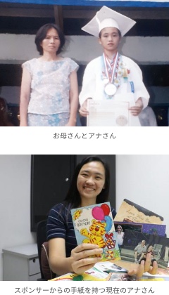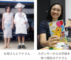 12歳の時に、病気でお母さんを亡くしたアナさん。そんな彼女を支えたのは海の向こうのチャイルド・スポンサーから届いた手紙だったそうです。