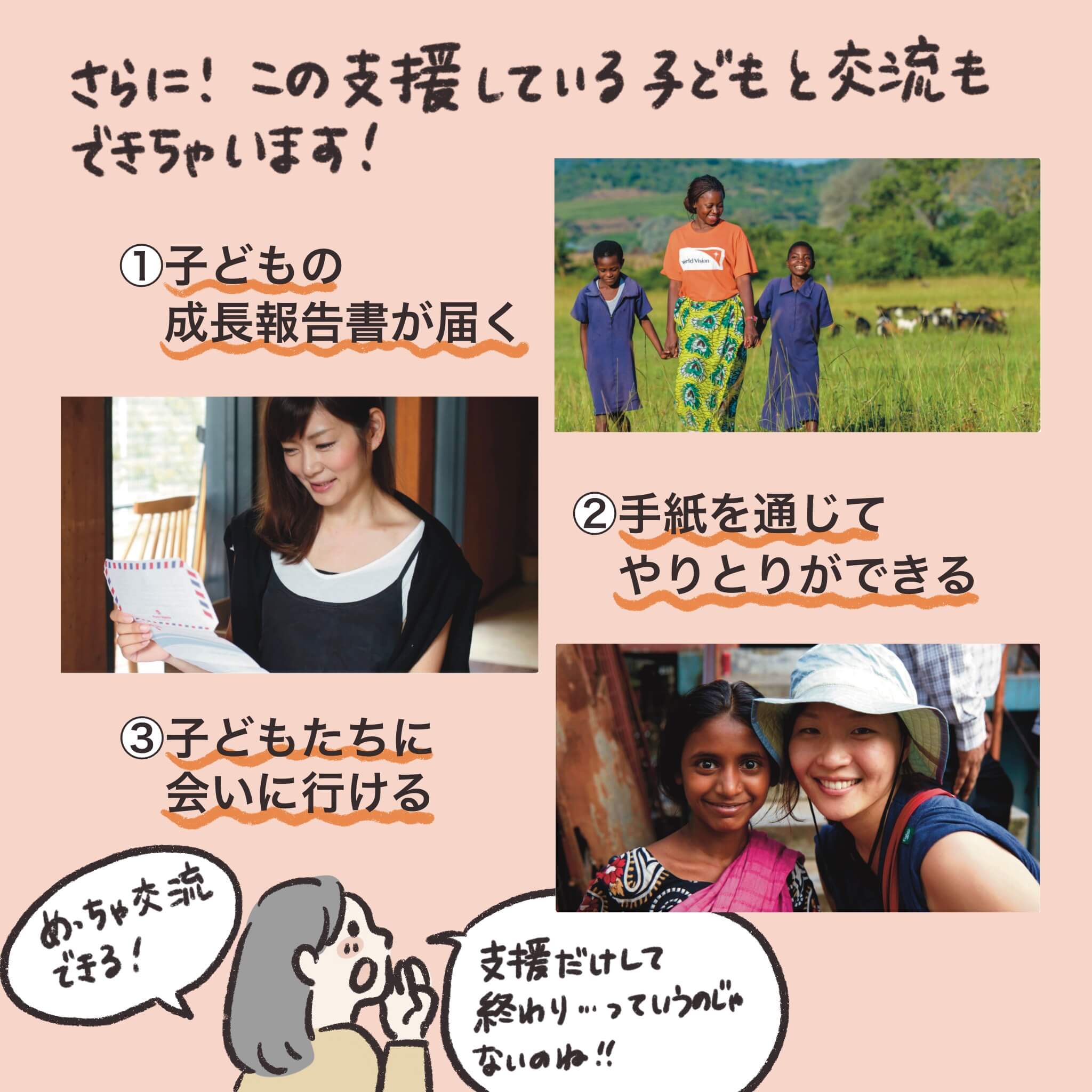 「顔の見える支援」を通して、あなたを選んだチャイルドの成長を見守ったり、支援の成果を実感いただけます。