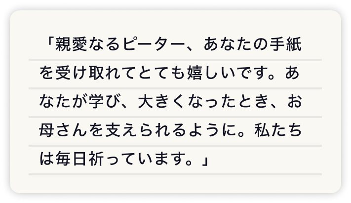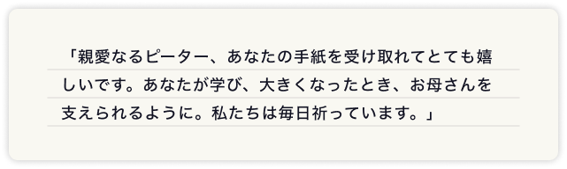 そのわずか二週間後、ワールド・ビジョンのオフィスで一通の手紙を受け取りました。
