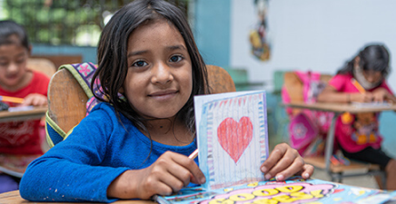 マルフは、スマヤが学校に通っていないことを知り、 ワールド・ビジョンが運営するイブニングクラスに誘いました。