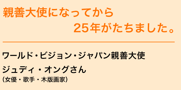 私が、ワールド・ビジョン・ジャパンの親善大使となってから25年が経ちました。