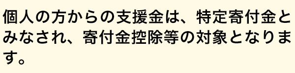 法人の皆さまからのご支援金は、一般の寄付金等の損金算入限度額とは別に、特別損金算入限度額の範囲内で損金算入をすることができます。