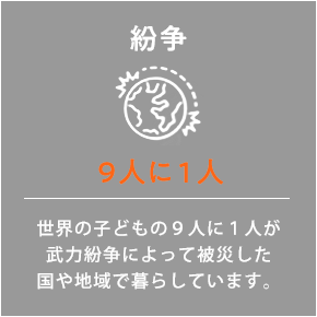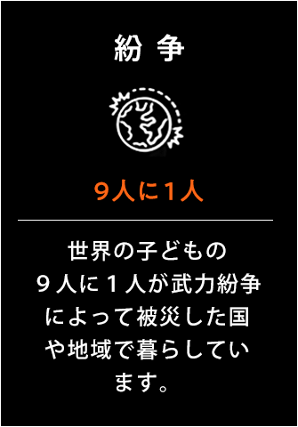 自然災害や紛争などで危機的な状況に置かれている子どもたちを守るための支援活動事業。