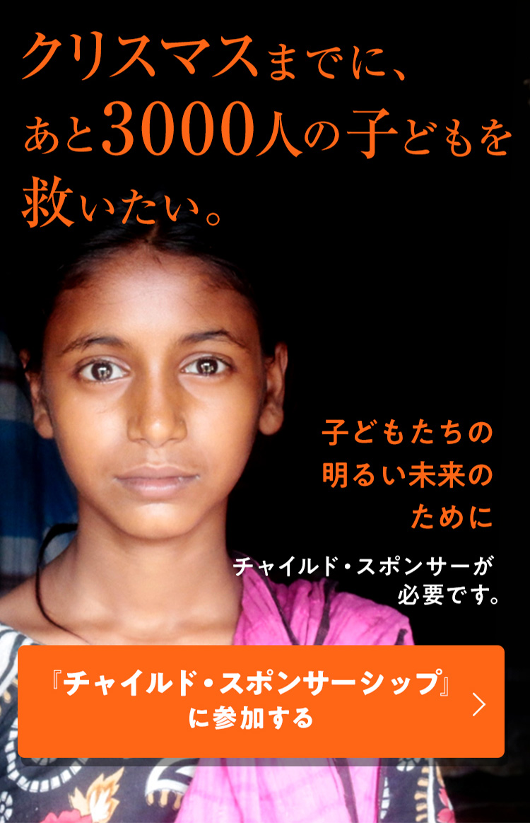 クリスマスまでに、あと3000人の子どもを救いたい。子どもたちの明るい未来のためにチャイルド・スポンサーが必要です。