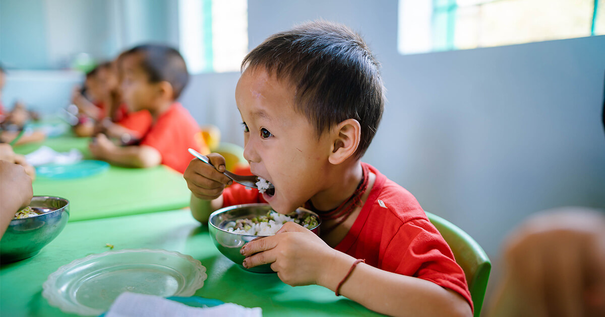 森永乳業とともにトアンザオ地域開発プログラムにおいて、子どもたちの健康・栄養状態の改善に向けて、幼稚園給食支援プログラム「Smiles & Health for Children」を開始し、同郡の幼稚園における給食提供の基盤整備と、教員や保健スタッフの栄養・衛生に関する知識向上やスキル強化に取り組んでいます。